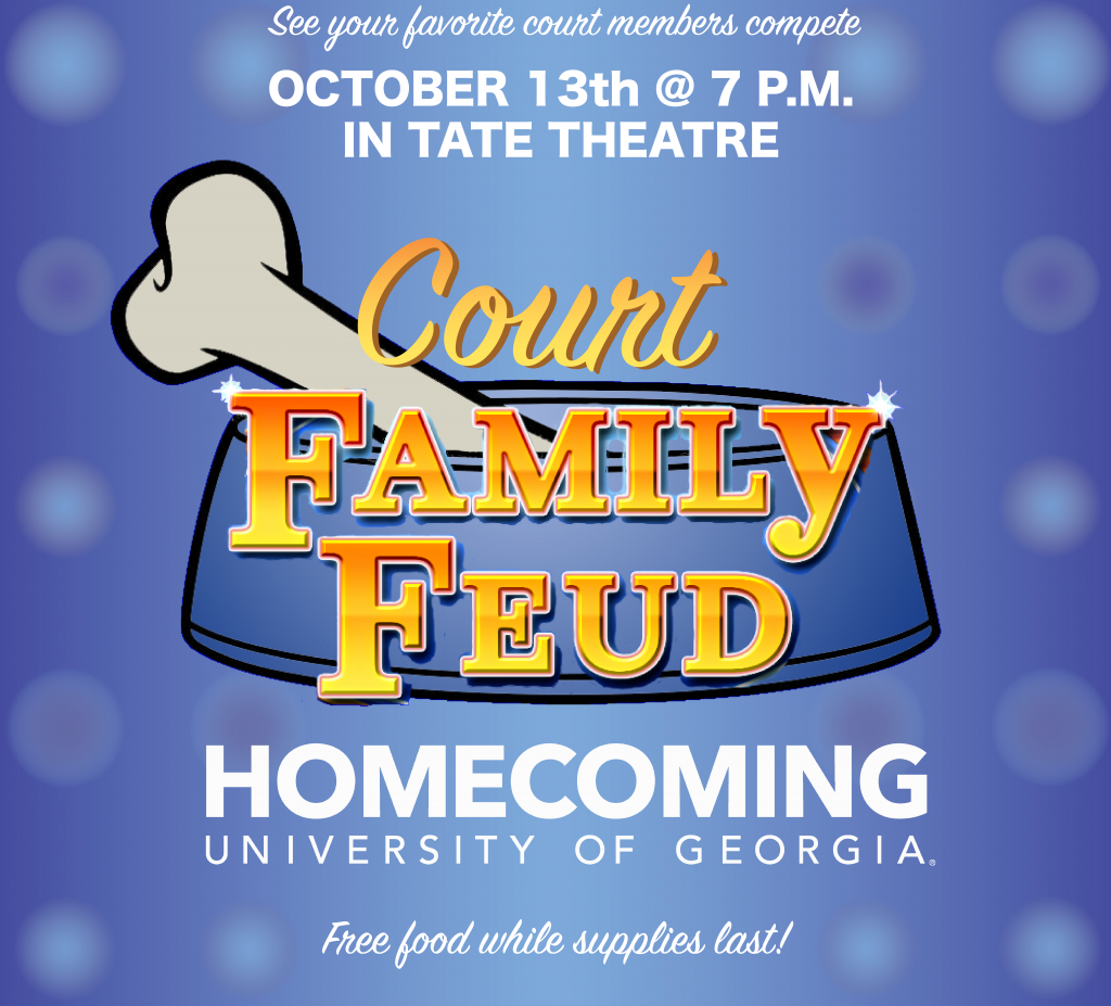 Survey says – students should tune in and watch the 2021 Homecoming Court compete in a UGA-themed “Family Feud” event.